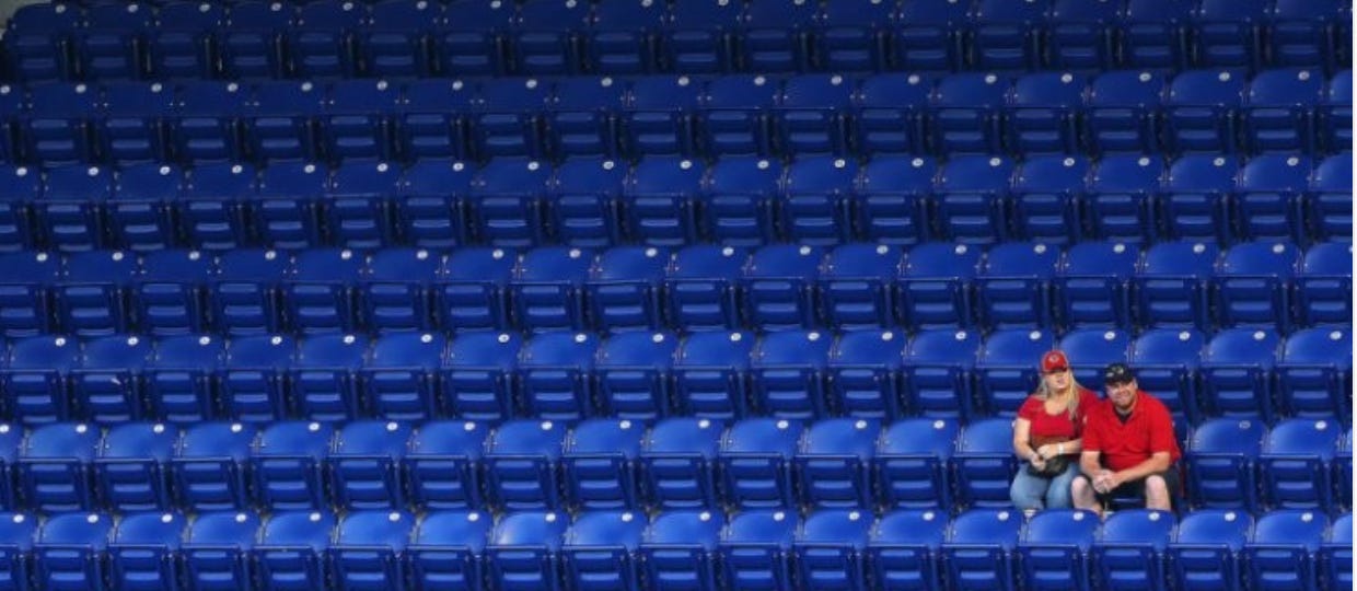 People do still want that live experience, of taking in an event with a group of people. It just has to feel like a true experience. I actually point to Calgary’s Saddledome as evidence of this. If you’ve never been, because of the curved roof, the press boxes actually hang out over a group of seats near the back of the upper bowl. Thus, if you’re sitting in those seats, you can only see about half of the ice surface. When the action is on the other half of the ice, you watch the game from TVs mounted on the back of the press boxes. So why would you sit there when you’re watching half the game on TV, just like you would at home? Because of the communal live experience. Those seats don’t sell out during the regular season, but you can bet during the playoffs they do.