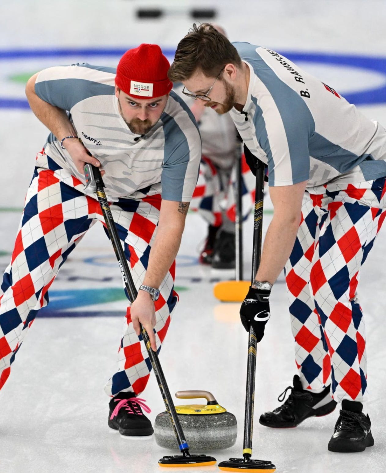 Speaking of identical kits to last Olympics, here we have the Swedes. Look, I do really like the Tre Kronor, and I love the yellow. It’s instantly identifiable, no other nation uses yellow so prominently in their colourway, and the jackets are in lockstep with Sweden’s hockey and soccer teams, which not every curling nation attempts. That said, I do think there’s a bit of a tendency to lean on the Tre Kronor’s iconic status and not shoot for much more outside of that. Uniqlo has come up with some truly unique designs for the off-ice kit and they’re a big player in world fashion. So I’d kinda love if they’d try something crazy, even if it’s just for a third kit, rather than taking the easy way out. These are even simpler than last time, where they had a Swedish flag loop on the cuff of the sleeves which I quite liked. These are efficient, they immediately scream “SWEDEN”, and they are not bad. But I like to live on the wild side.